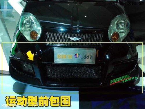 瑞麒M1改装车的前杠换成了运动型前包围,看起来非常的运动,改装的相当彻底,不是简单改改前部,让车身的感觉更低。