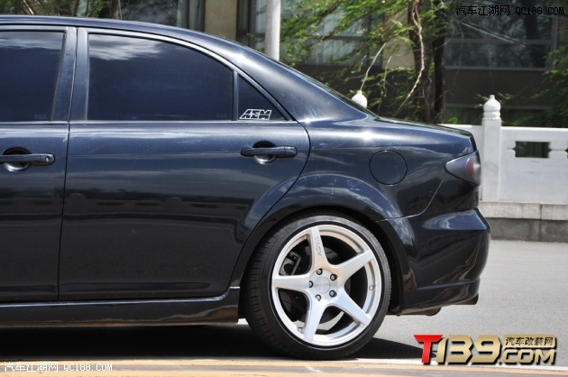 纯黑色外观,远处看上去和原厂几乎没有两样,而换装MPS6前杠后,隐约露出的中冷器暴露了它的真实身份。 (在这里解释一下MPS的由来,MPS或MazdaSpeed属马自达高性能系列,MPS6 即国外马自达6的原厂高性能版本,原车搭载直列四缸2.3升涡轮增压缸内直喷引擎,最大功率274马力,最大扭矩380Nm,四轮驱动系统。 )