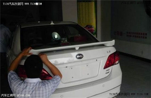 粘贴式的安装需要先将接触面清洁干净再进行后续步骤:贴箱尾翼(俗称压尾)用3M双面泡棉胶带(须确定为汽车专用,谨防赝品)粘贴即可;单层尾翼用纤维土粘贴即可;双层尾翼用纤维土粘贴或用不锈钢攻牙螺钉从行李舱内部往外固定(注意钻孔处须做防锈处理)即可。