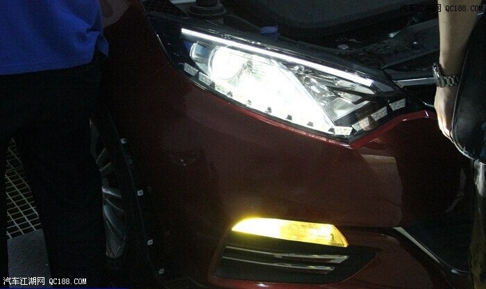 提车回来也有好一段时间了,一直总是觉的长安致尚XT原车车灯比较暗,经过网络对车灯改装案例有的了解对比,决定将灯光升级,改装4300K氙气灯,但是考虑到如果只改装氙气灯的话就会出现散光的现象,为了解决散光的问题,就加装了Q5双光透镜,最后为了显示车的与众不同更加的高端大气,还在大灯总成里加装了LED双色泪眼以及LED红色恶魔眼。
