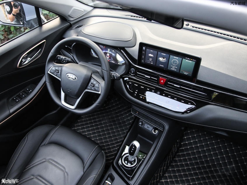 来到内饰部分,江淮iEVS4的两款新车采用了环抱式中控台布局设计,悬浮式中控屏显得格外抢眼,支持触屏功能的它可完成大部分的操作。配置方面,其配备了全液晶仪表、全景天窗、无钥匙进入/启动、定速巡航等。