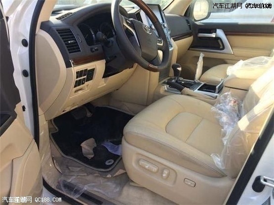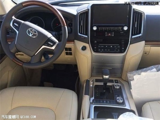 19款中东版纯进口丰田酷路泽5700整个操控区域色调为 深色系,仪表盘、方向盘和排挡等位置均配以桃木装点,尽显豪华质感。不但具有DVD导航,这款车的倒车 影像还可以显示在内后视镜上;中央扶手箱还装备了冷藏 箱,这些都与中规版车型有所不同。酷路泽5700车内看着更明亮、同时也更显豪华,更符合中国消费者对“豪华”的定义。整个操控区域色调为深色系,仪表盘、方向盘和排挡等位置均配以桃木装点,尽显豪华质感。车内8个座椅均为真皮打造,第一排座椅:电动、可调节;第二排座椅:带头枕、可折叠、中央扶手。对 于兰德酷路泽来说,皮实、耐用才是不变的王道中东酷路泽5700新增的弯道辅助系统,也是第一次运用在兰德酷路泽车型上,通过对车辆转向时内外侧车轮转速的限制从而减少转弯半径。兰德酷路泽5700强大的动力配合天生的越野悬挂,几乎可以应付任何复杂的地。