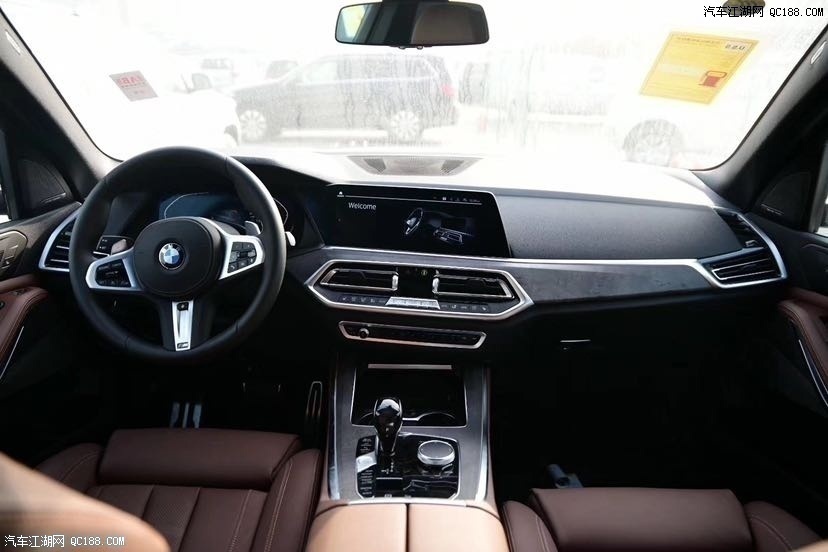 20款宝马X5内饰更加豪华的感觉,用了两块巨大的12.3英寸的屏幕,整车效果不错。大面积的皮质包裹,手感很好,粗大握感十足的皮质方向盘,带换挡拨片,方向盘加热等等,全液晶的12.3英寸的仪表,显示的内容相当丰富,并且显示分辨率和操作响应速度都是相当快,中控换挡区域最大的变化就是,档杆换成了全新的水晶档杆,整体的豪华感和科技感更加强,但是只有顶配才可以选择。