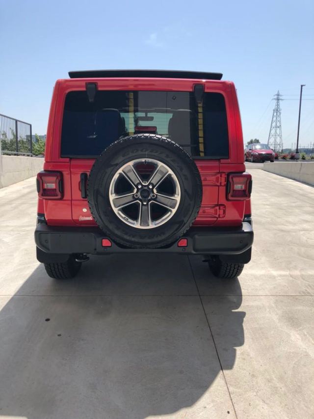 2020款吉普牧马人前脸格栅采用经典的七孔折痕设计,看上去更精致,而不乏力量感,前大灯呈双圆形设计,LED日间行车灯移到了两侧的轮供上面,前雾灯集成在前保险杠两侧。牧马人尾部呈四方形设计,尾灯采用四边形灯带设计,还配备了后挂式备胎,后保险杠向外突出,保险杠下方还配备了挂钩设计。非常健硕的身形在路上有着相当不错的回头率,从后视镜中看到被这么个大家伙“尾随”心理压力也颇大。