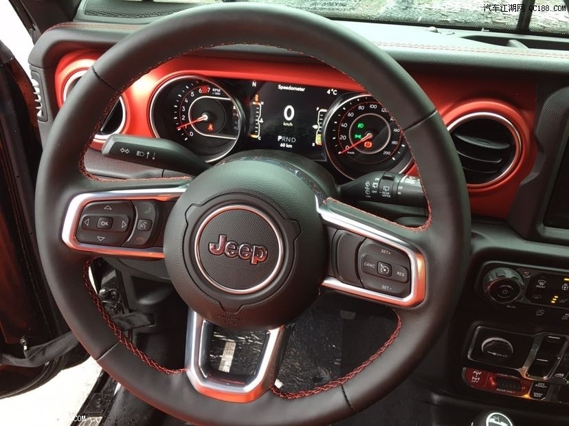 20款牧马人罗宾汉内饰采用双色设计,采用三幅式多功能方向盘设计,配备双圆形机械仪表盘,中控台配备内嵌式触摸屏设计,下方保留了大量实体按键