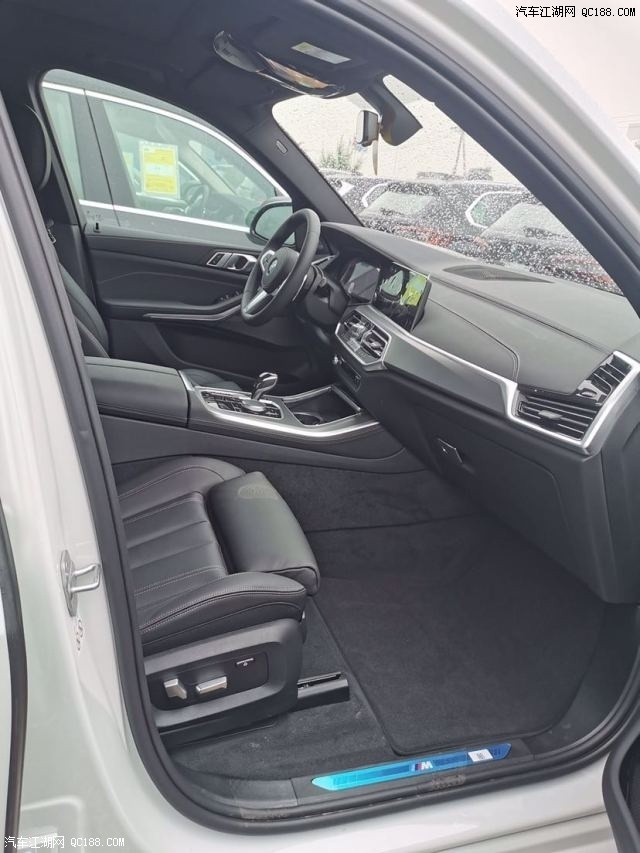 内饰上,全液晶仪表盘十分亮眼,并且还要求配备了真皮的方向盘,握感也不错。中控台上方采用了搪塑工艺的软包材质,而在门板位置,这是皮质的包裹,另外车内的座椅全都是真皮的材质,所以这款车型是目前来说最走量的一款。新款宝马X5通过中央控制器和控制显示屏,直观简洁地控制各种舒适和娱乐功能。新车独特的i-Drive系统可以提供诸多信息,使驾驶员在驾驶中更方便的控制车内系统。真皮座椅很柔软,乘坐舒适,前后排座椅都装备了加热和通风功能。宝马X5车内彰显出强健的气魄和全面的道路适用性。真皮的多功能方向盘手感极佳,宽大的中控台简洁流畅,多功能电动驾驶座椅舒适性十足,整车采光效果十分出色。精准的操控、人性化科技配置以及自身品牌优势都是新一代宝马X5有力的武器。宝马X5通过中央控制器和控制显示屏,直观简洁地控制各种舒适和娱乐功能。新车独特的i-Drive系统可以提供诸多信息,使驾驶员在驾驶中更方便的控制车内系统。真皮座椅很柔软,乘坐舒适,前后排座椅都装备了加热和通风功能。