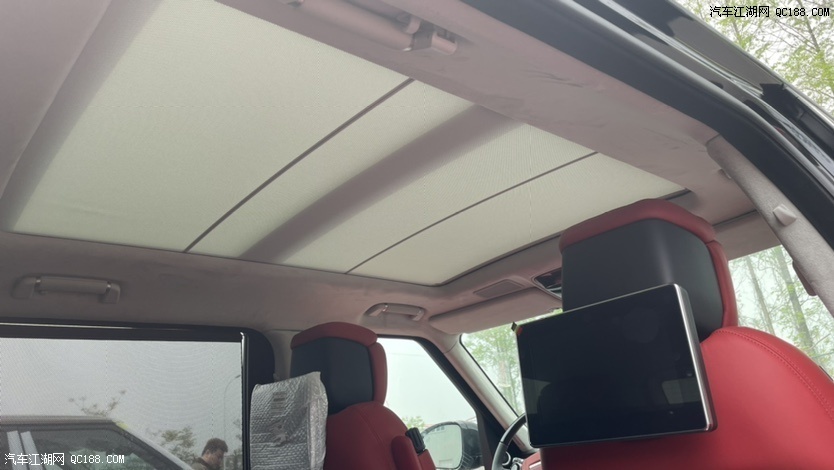 22 寸 7 辐抛光熏黑钻石刀锋轮 灰色刹车卡钳带路虎标致 全景可滑动天窗 黑色外观包 素 镭射 LED 大灯带 LED 签名 红黑双拼真皮内饰 24 项座椅调节带加热带通风制冷带热石按摩 后排商务座椅带腿托 黑色真皮高级车内顶 实木中控台内饰 丹拿音响825W 高级驾驶辅助 包 自动紧急刹车系统 中央扶手冰箱 雾灯 多功能真皮方向盘带加热 挡风玻璃加热 电子 后视镜带加热带记忆带盲区辅助 胎压系统 高级脚踏 全地形控制 二代地形 12.3 寸显示屏 抬头显示 后排多媒体显示屏10寸 360环影 死角辅助系统 主动速度控制系统 4区空调 无 钥匙进入 电吸门 电尾门 电子可收缩拖车钩 选配: 车外观蓝色金属漆 22 寸 7 辐抛光熏黑钻石刀锋轮 黑色外观包 像素镭射 LED 大灯带 LED 签 名 24 项座椅调节带加热带通风制冷带热石按摩 后排商务座椅带腿托 高级驾驶辅助包 中 央扶手冰箱